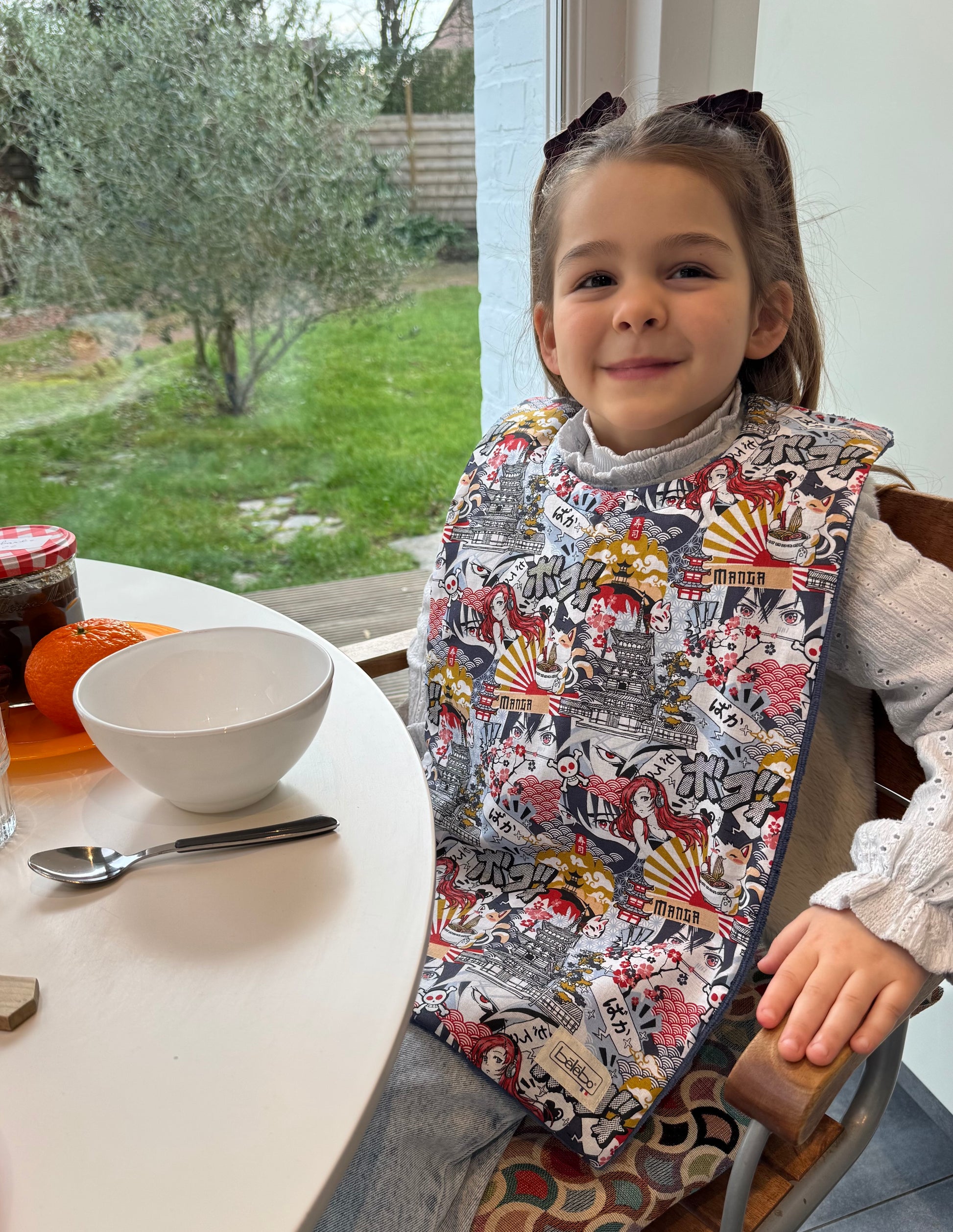 Notre bavoir aide à gagner en autonomie tout en apportant un côté « fun », différent d’un bavoir traditionnel.