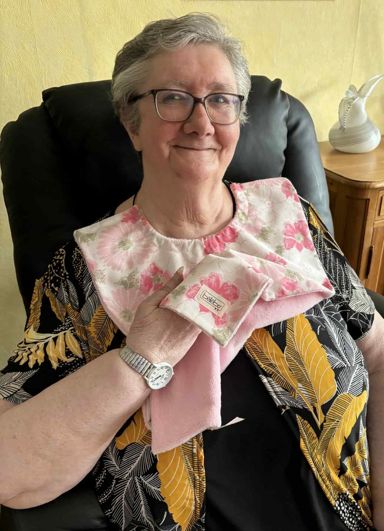 Décliné en plusieurs matières, tailles et motifs, le bavoir Bélébo® apporte autonomie, dignité et élégance au moment des repas !