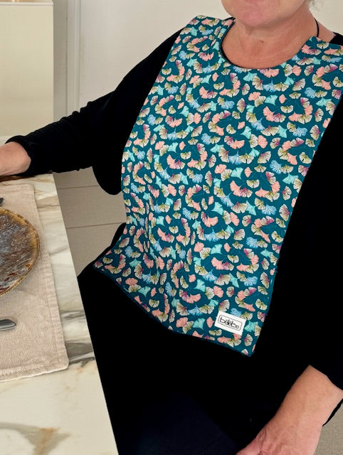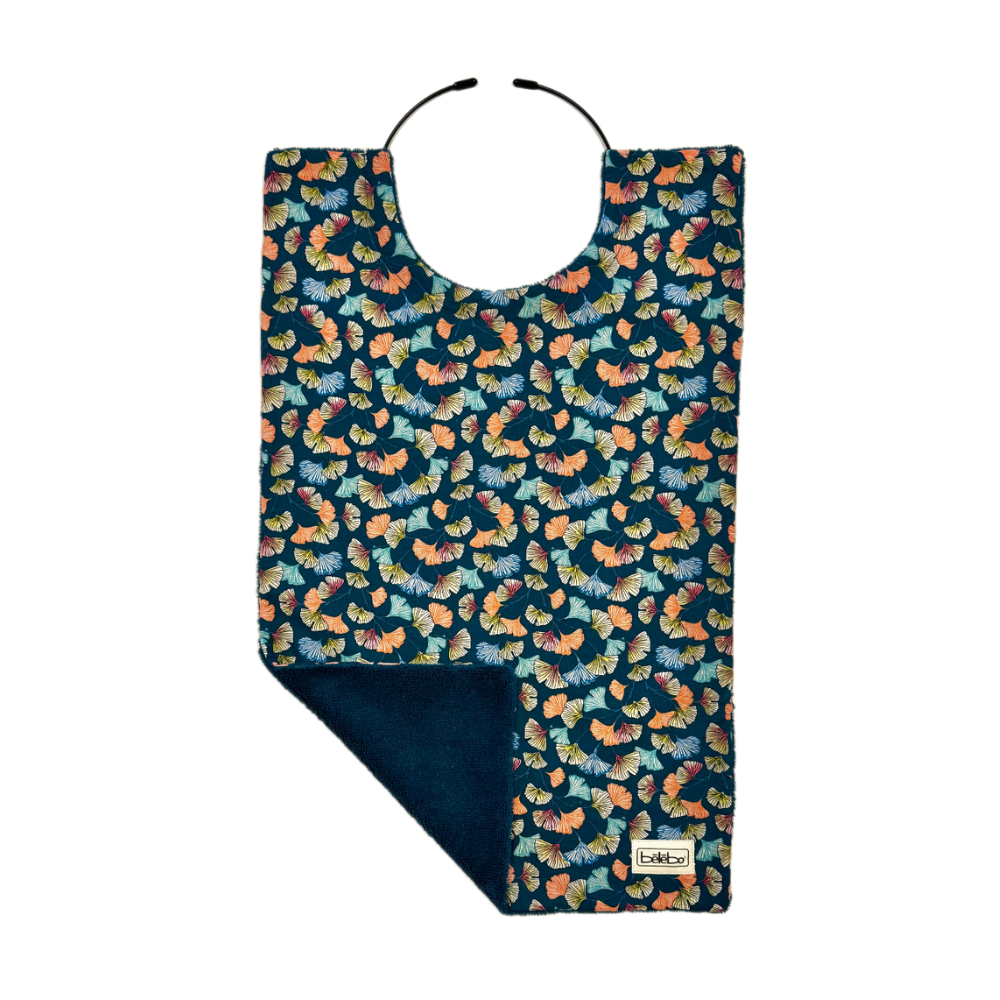 Décliné en plusieurs matières, tailles et motifs, le bavoir Bélébo® apporte autonomie, dignité et élégance au moment des repas !