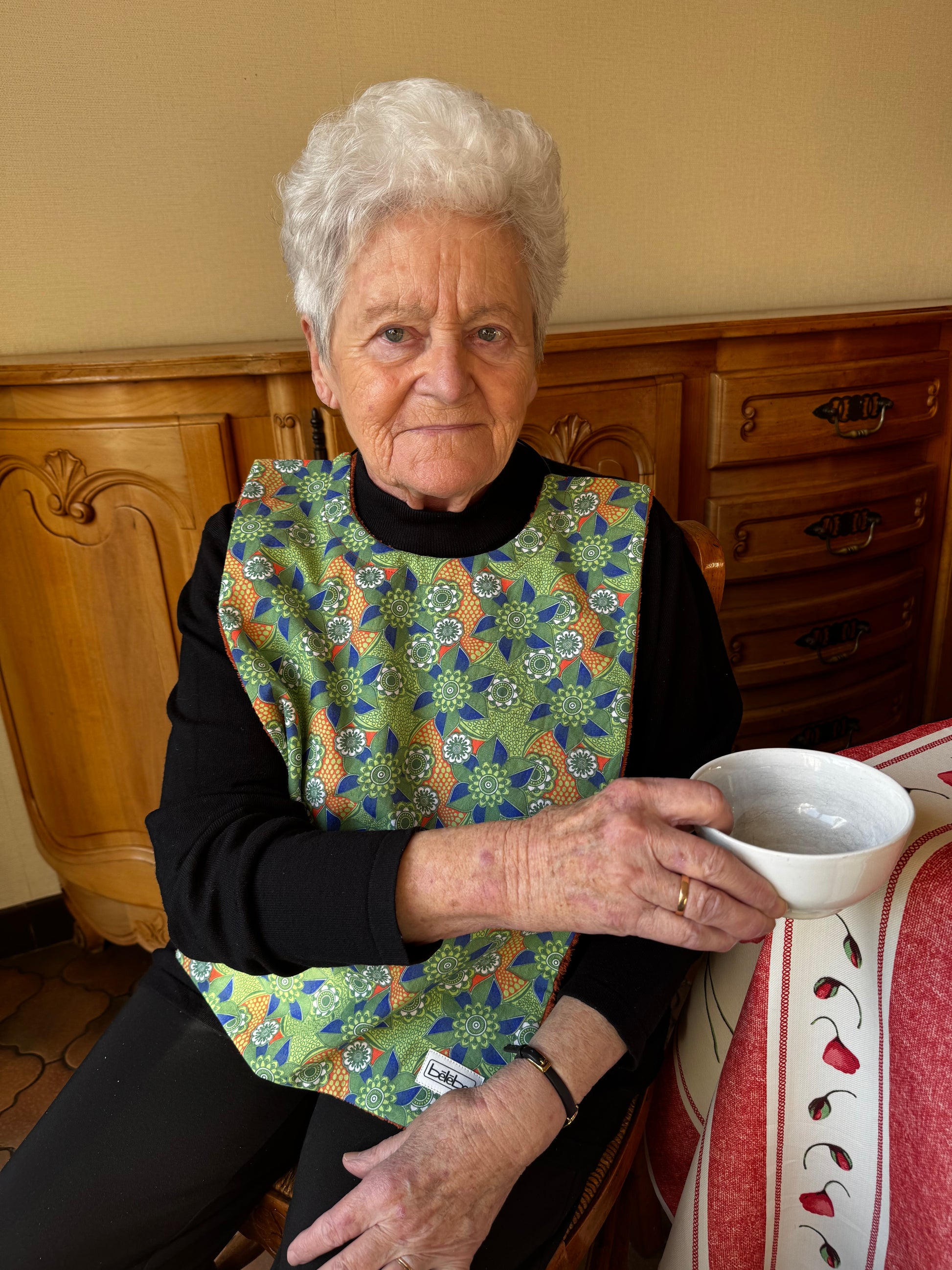 Décliné en plusieurs matières, tailles et motifs, le bavoir Bélébo® apporte autonomie, dignité et élégance au moment des repas !